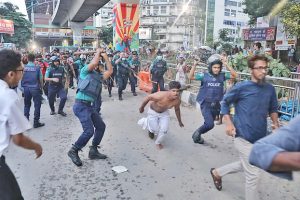এর এক পর্যায়ে দুই পক্ষের মধ্যে সংঘর্ষ শুরু হয়। তখন পুলিশ এসে দুই পক্ষকে লাঠিচার্জ করে সড়ক থেকে সরিয়ে দেয়। এরপর শাহবাগ মোড় দিয়ে পুরোদমে যান চলাচল শুরু হয়েছে।