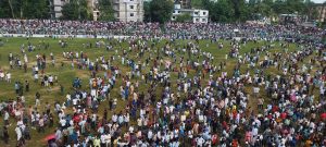 একপর্যায়ে উত্তেজিত দর্শকরা মাঠের প্রবেশ গেইট ভেঙে মূল মাঠে ঢুকে পড়েন। মুহূর্তের মধ্যে ভিড়ে স্টেডিয়াম ও আশপাশের এলাকা জনসমুদ্রে পরিণত হয়। মাঠের ভেতরে বিশৃঙ্খল পরিবেশ সৃষ্টি হয়।