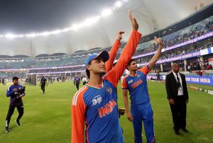 সাধারণত শিরোপা জয়ের পর ট্রফি নিয়েই সমর্থকদের অভিবাদনের জবাব দেন খেলোয়াড়েরা। তবে গত রাতে তেমনটা হয়নি। ট্রফি ছাড়া খালি হাত উঁচিয়েই দর্শকদের অভিবাদনের জবাব দিয়েছেন অভিষেক শর্মা–সূর্যকুমার যাদবরা