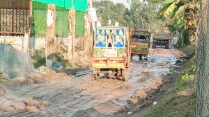 স্থানীয়রা জানান, কয়েক বছর ধরে সড়কের অধিকাংশ অংশে পানি জমে থাকায় চলাচল দুর্ভোগের শিকার হচ্ছেন হাজারো মানুষ। এলাকা ছাড়াও কয়েকটি শিক্ষা প্রতিষ্ঠানের শিক্ষার্থীরা প্রতিদিন এই পথে স্কুল ও কলেজে যাতায়াত করেন। বর্ষার সময় রাস্তার বিভিন্ন অংশে হাঁটু থেকে কোমর পর্যন্ত পানি জমে থাকে। পানি নেমে গেলে থাকে বড় বড় গর্ত, কাদা ও ভাঙাচোরা রাস্তা—যা হেঁটে চলা শিক্ষার্থী ও যানবাহন উভয়ের জন্যই বিপজ্জনক।