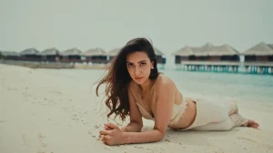 প্রকাশিত সেই ছবিতে দেখা যায়, সমুদ্রঘেরা একটি কটেজের সামনে দাঁড়িয়ে আছেন এই সুন্দরী। কানে গোঁজা কাঠগোলাপ, আর পরনে কালো ও অফ-হোয়াইট রঙের নজরকাড়া স্লিভলেস লং ড্রেস। তার মোহময়ী চাহনি আর মিষ্টি হাসির মিশেলে ছবিগুলো যেন জীবন্ত হয়ে উঠেছে।