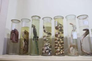 রাজশাহী বিশ্ববিদ্যালয়ের প্রাণিবিদ্যা জাদুঘরে দেখা মিলবে দুর্লভ ফসিল, বনরুই, শজারু, উদবিড়াল, বিলুপ্ত হওয়া নানা প্রজাতির সাপ, মানবদেহের নানা অঙ্গপ্রত্যঙ্গ, পরিফেরা থেকে ম্যামালস প্রজাতির হাজার হাজার নমুনা। কোনোটি সংরক্ষিত আছে শুকনো অবস্থায় মমি করে, আবার কোনোটিকে ফরমালিনে ডুবিয়ে সংরক্ষণ করা হয়েছে। স্বচ্ছ কাচের বাক্স ও জারে সারিবদ্ধভাবে আবদ্ধ করে রাখা হয়েছে তাদের। জাদুঘরের দেয়ালে ফ্রেমে বাঁধা রয়েছে বিভাগের শিক্ষকের তোলা বিভিন্ন প্রজাতির পাখির ছবি।