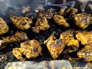 সন্ধ্যার পর নীলদিঘির পাড়ে জ্বলে ওঠে আগুন। তার ওপর তারের নেটে রাখা মাংস ধীরে ধীরে রঙ বদলায়, চারপাশে ছড়িয়ে পড়ে বারবিকিউয়ের সুগন্ধ। এক পাশে গিটারের সুর, অন্য পাশে দলবেঁধে গান। আড্ডা, হাসি আর গল্পে প্রাণ পায় পুরো পরিবেশ।