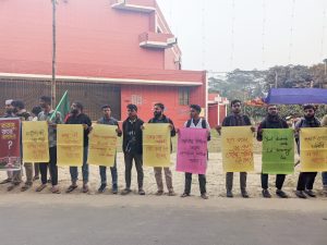 মঙ্গলবার (২০ জানুয়ারি) বিকেল পাঁচটার দিকে বিশ্ববিদ্যালয়ের মুক্তমঞ্চে ওই মানববন্ধন অনুষ্ঠিত হয়। এতে বিশ্ববিদ্যালয়ের বিভিন্ন অনুষদ, বিভাগ ও আবাসিক হলের ছাত্র শিবিরের নেতা-কর্মীরা অংশগ্রহণ করেন।