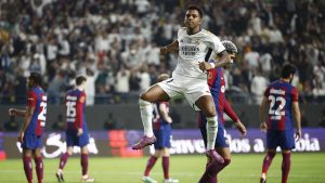 ফাইনালের স্কোরলাইন দেখে যতটা একপেশে মনে হচ্ছে, ততটা একপেশে ফাইনাল অবশ্য সৌদি আরবের মাটিতে নেই। অন্তত আক্রমণের ধারা যদি বিবেচনা করা হয়। কিন্তু ফুটবল গোলের খেলা। গোলের কাজটা করেছে কেবল রিয়াল মাদ্রিদই। চলতি মৌসুমে লম্বা সময় ধরে চোটে আক্রান্ত ভিনিসিয়ুস যেন নিজেকে আবার পুরাতন ছন্দে ফেরালেন এই এক ম্যাচ দিয়েই। এল ক্লাসিকোতে হ্যাটট্রিক। ম্যাচটায় ব্রাজিলিয়ান উইঙ্গার কতখানি উজ্জ্বল ছিলেন তা বোঝাতে সম্ভবত ছোট এই তথ্যটাই যথেষ্ট। ম্যাচ শুরুর প্রথম সুযোগটা অবশ্য বার্সেলোনাই পেয়েছিল। ৫ মিনিটেই রিয়ালের ত্রাতা হয়ে যান গোলরক্ষক আন্দ্রে লুনিন। এরপরই এগিয়ে যায় রিয়াল। জ্যুড বেলিংহ্যামের পাস থেকে ভিনিসিয়ুস যখন বার্সার হাই লাইন ডিফেন্স ভেঙেছেন, তখন সামনে শুধুই গোলরক্ষক। চিরায়ত ব্রাজিলিয়ান ঢঙে তাকে পাশ কাটিয়ে স্কোরলাইন করলেন ১-০।