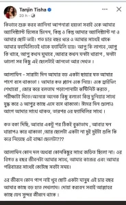 ফেসবুক পোস্টে সহকারী আলামিনকে নিয়ে তানজিন তিশা স্মৃতিকাতর হয়ে লিখেছেন, ‘আপনারা হয়তো সবাই ওকে আমার অ্যাসিস্ট্যান্ট হিসেবে চিনেন। কিন্তু ও আমার অ্যাসিস্ট্যান্ট নয়, ও আমার ছোট ভাই। গত চার বছর ধরে ও আমার সঙ্গেই থাকে। আমার পরিবারে থাকে, পরিবারের অংশ হয়ে। আপুর কী লাগবে, আপু কী খাবে, আপু কখন ঘুমাবে, আবার কখন মনটা খারাপ, মনটা ভালো—সবকিছু এই ছেলেটাই জানত আর দেখত!’