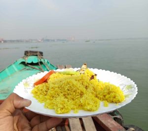 তাহলে চলুন আপনাদের সঙ্গে আমার কাটানো সবুজ বাংলা এক্সপ্লোরার্সের একটি অসাধারণ দিনের অভিজ্ঞতা শেয়ার করি। আমাদের ভ্রমণ শুরু হয় সকাল ৮টায় মতিঝিল থেকে। আমরা একটি দৈনিক সবুজ বাংলা গ্রুপের সঙ্গে যোগ দিই। আমাদের প্রথম গন্তব্য ছিল মেঘনা ঘাট। সেখানে পৌঁছানোর পর, আমরা সবুজ বাংলা এক্সপ্লোরার্সের সোনার তরীতে করে আমাদের গন্তব্য মায়াদ্বীপের দিকে রওনা হই। তরীতে ওঠার পরপরই আমাদের সকালের নাস্তার ব্যবস্থা করা হয়, যা সত্যিই মনোমুগ্ধকর ছিল। নাস্তায় ভুনা খিচুড়ি, ডিম ভাজি এবং আচার পরিবেশন করা হয়। নদীর মাঝবরাবর অবস্থায়, এমন পরিবেশে ভুনা খিচুড়ি দিয়ে সকালের নাস্তা সত্যিই এক অনন্য অভিজ্ঞতা। এভাবে নদীর মাঝবরাবর অবস্থায় সকালে নাস্তা তাও আবার ভুনা খিচুরির সাথে ডিম ভাজি ভাবতেই কেমন লাগছে তাই না? হ্যা এটা অনেকের মতোই আমারও জীবনের প্রথম অভিজ্ঞতাই ছিল। নদীর স্নিগ্ধ বাতাস, পানির শব্দ, আর সঙ্গে এমন মজার খাবার সব মিলিয়ে দিনটি যেন এক নতুন স্বাদে রঙিন হয়ে উঠেছিল সেই সকাল।