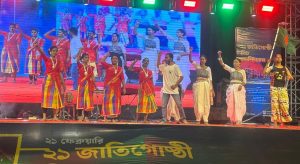 আলোচনা পর্ব শেষে বান্দরবান জেলার বিভিন্ন জাতিগোষ্ঠীর শিল্পীদের পরবেশনা শুরু হয়। প্রথমেই বিভিন্ন ভাষায় ‘একুশের গান’ পরিবেশন করেন শিল্পীরা। সমবেত কণ্ঠে পরিবেশিত হয় ‘ধনধান্য পুষ্পভরা’ গানটি। এরপর ‘মারমা পাখা নৃত্য’, ‘বম জীবন ধারা নৃত্য’ এবং ‘সংগীত’ পরিবেশিত হয়। পরিবেশনার এ পর্যায়ে পরিবেশিত হয় ‘খুমি মাছ ধরা নৃত্য’, ‘ময়ূর নৃত্য’ এবং ‘সংগীত’। এরপর ‘চাকমা গান’, ‘তঞ্চঙ্গা নৃত্য’ এবং ‘ম্রো জুম নৃত্য’ পরিবেশন করেন শিল্পীরা। আবারও পরিবেশিত হয় ‘ত্রিপুরা গান’ এবং ‘চাকমা প্রদীপ নৃত্য’। এরপর পরিবেশিত হয় ‘লুসাই বাঁশ নৃত্য’, ‘সংগীত ও সম্প্রীতি নৃত্য। দেশাত্ববোধক গান (মাহালী সাওতালী পাহাড়িয়া) পরিবেশনের মধ্য দিয়ে সমতলের শিল্পীদের পরিবেশনা শুরু হয়। ‘দাসাই নৃত্য’ (সাওতালী), ‘পাহাড়িয়া নৃত্য’ এবং ‘কমেডি’ পরিবেশিত হয়। পরিবেশনার এ পর্যায়ে ‘ওরাও নৃত্য’ এবং ‘মাহালী নৃত্য’ পরিবেশন করে শিল্পীবৃন্দ। সবশেষে ‘মণিপুরী মৃদঙ্গ নৃত্য’ ও ‘মণিপুরী রাস নৃত্য’ পরিবেশিত হয়।