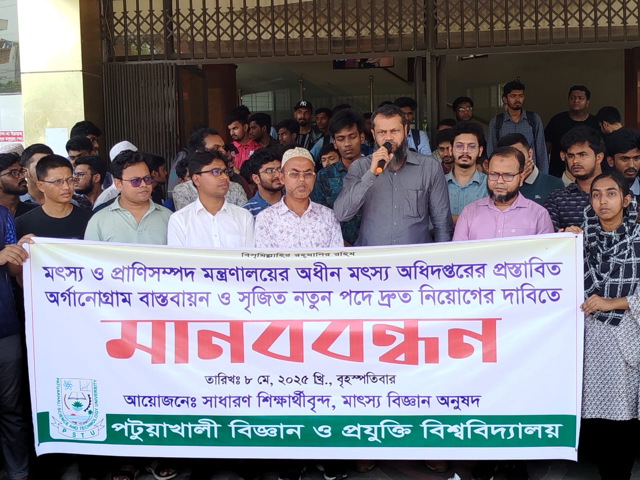 মৎস্য অধিদপ্তরের নতুন পদে দ্রুত নিয়োগের দাবিতে পবিপ্রবিতে মানববন্ধন