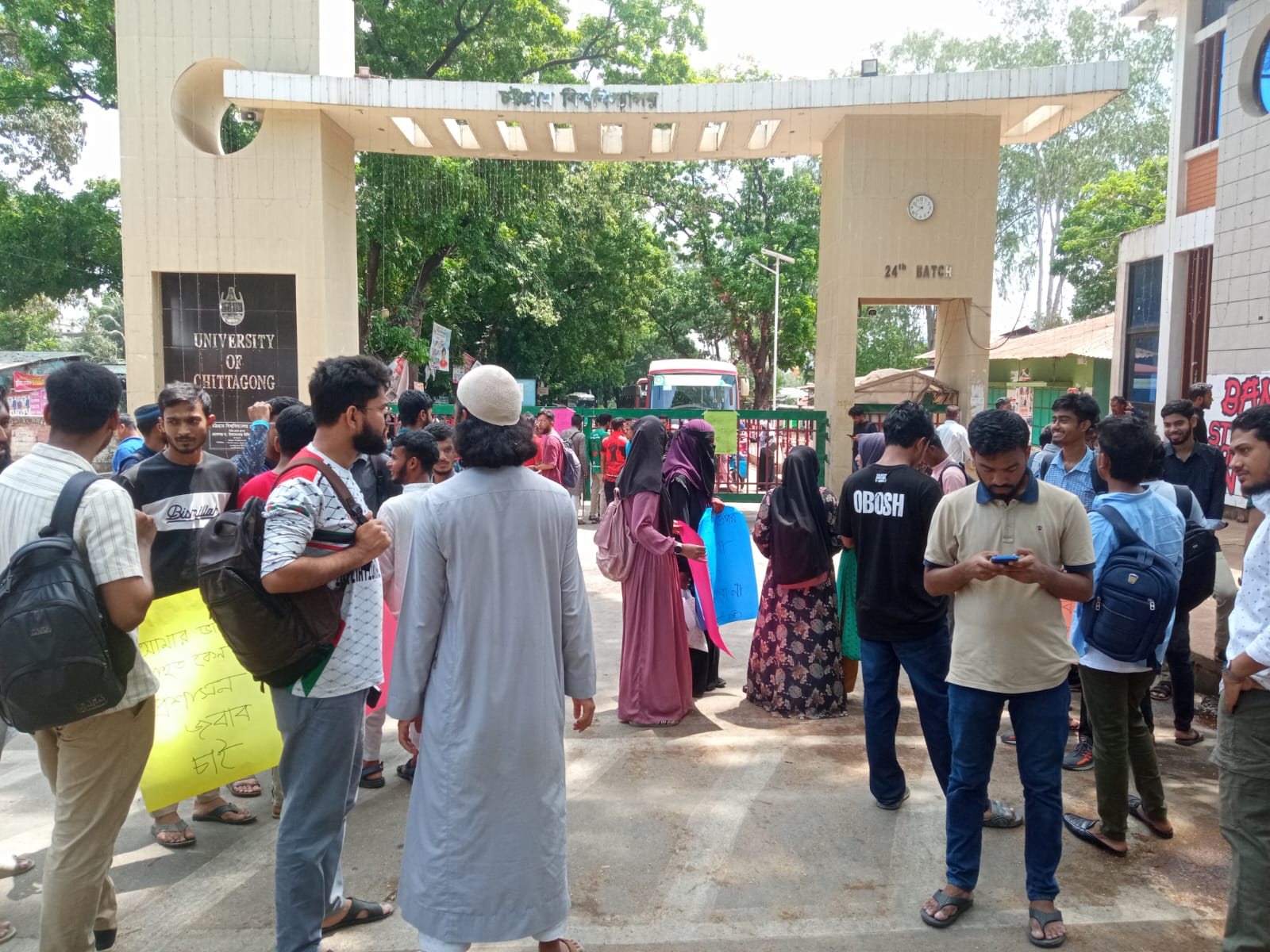 শিক্ষার্থীর ওপর হামলার প্রতিবাদে চবির মূল ফটকে তালা