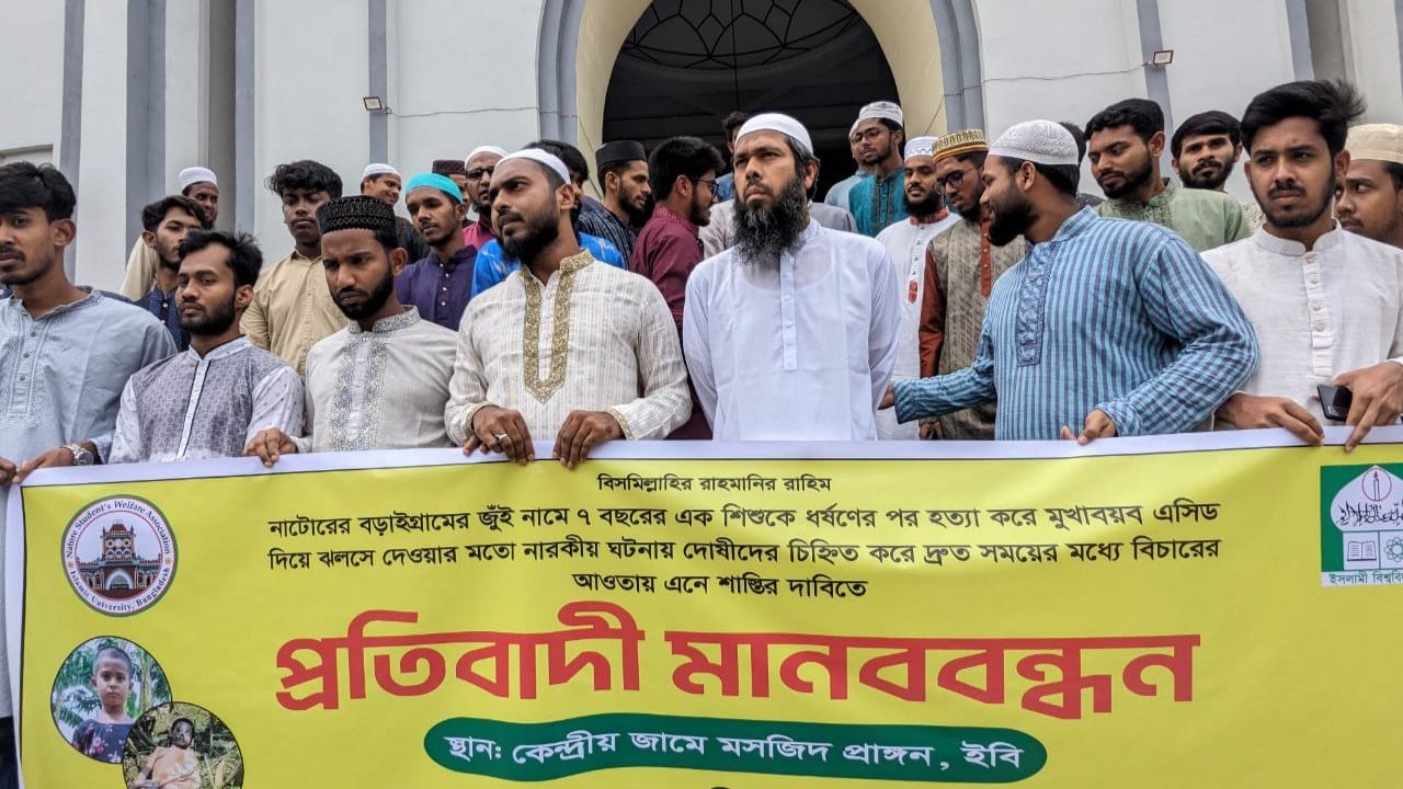 নাটোরে শিশু ধর্ষণ ও হত্যার প্রতিবাদে ইবিতে মানববন্ধন