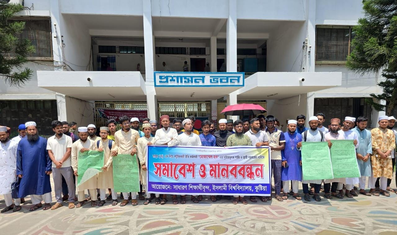 মহানবী (স:) কে নিয়ে কটুক্তিকারী ইবি কর্মকর্তার শাস্তির দাবীতে মানববন্ধন