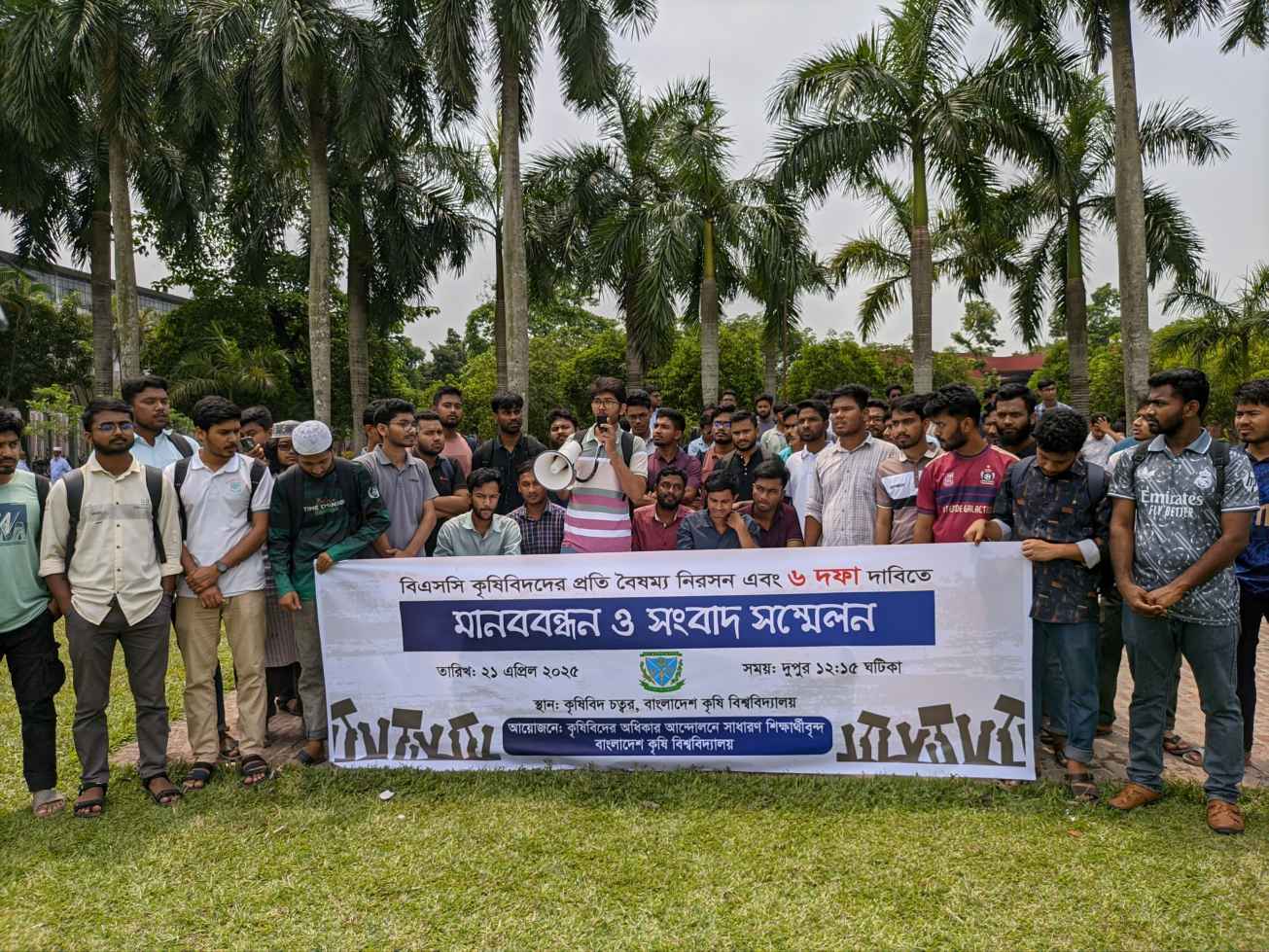 বিএসসি কৃষিবিদদের বৈষম্য নিরসনে বাকৃবি শিক্ষার্থীদের মানববন্ধন