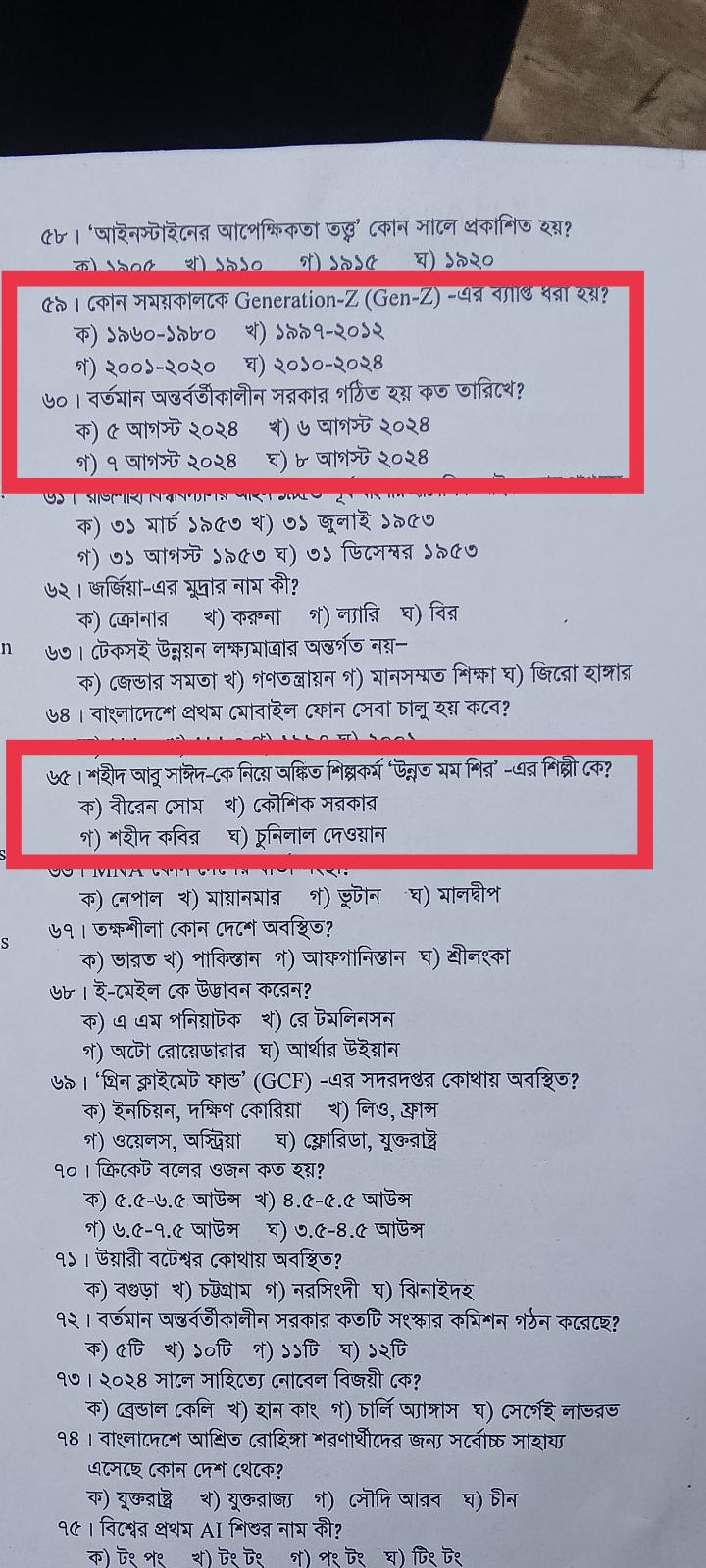 রাবি ভর্তি পরীক্ষায় শহীদ আবু সাঈদ ও জেন-জি নিয়ে প্রশ্ন
