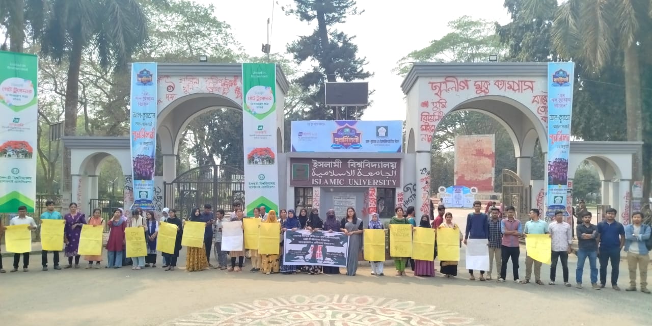 ইবিতে ধর্ষণ, শ্লীলতাহানি ও নারী নির্যাতনের বিরুদ্ধে মানববন্ধন ও প্রতিবাদ সমাবেশ