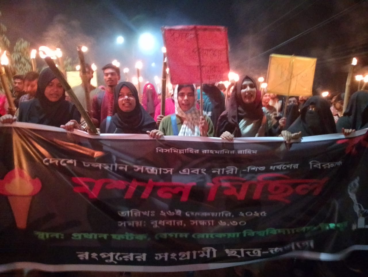 দেশজুড়ে ধর্ষণ ও সন্ত্রাসী কর্মকাণ্ডের প্রতিবাদে বেরোবিতে মশাল মিছিল