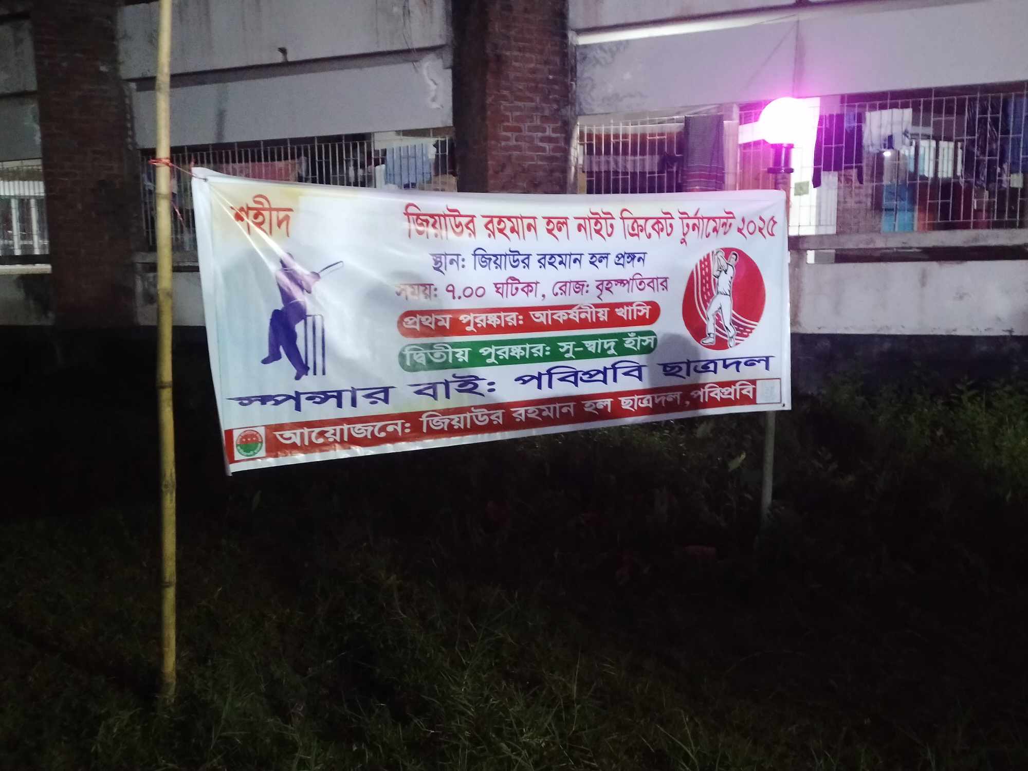 পবিপ্রবিতে ছাত্রদলের ব্যানারে টুর্নামেন্ট পন্ড, শিক্ষার্থীদের বাধায় নামানো হলো ব্যানার
