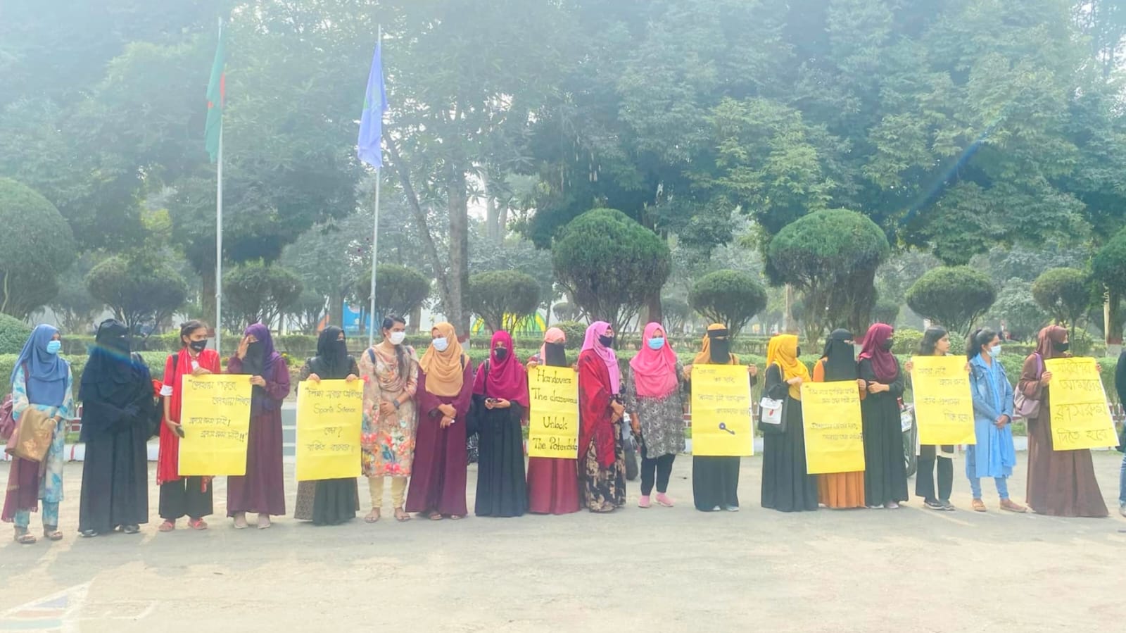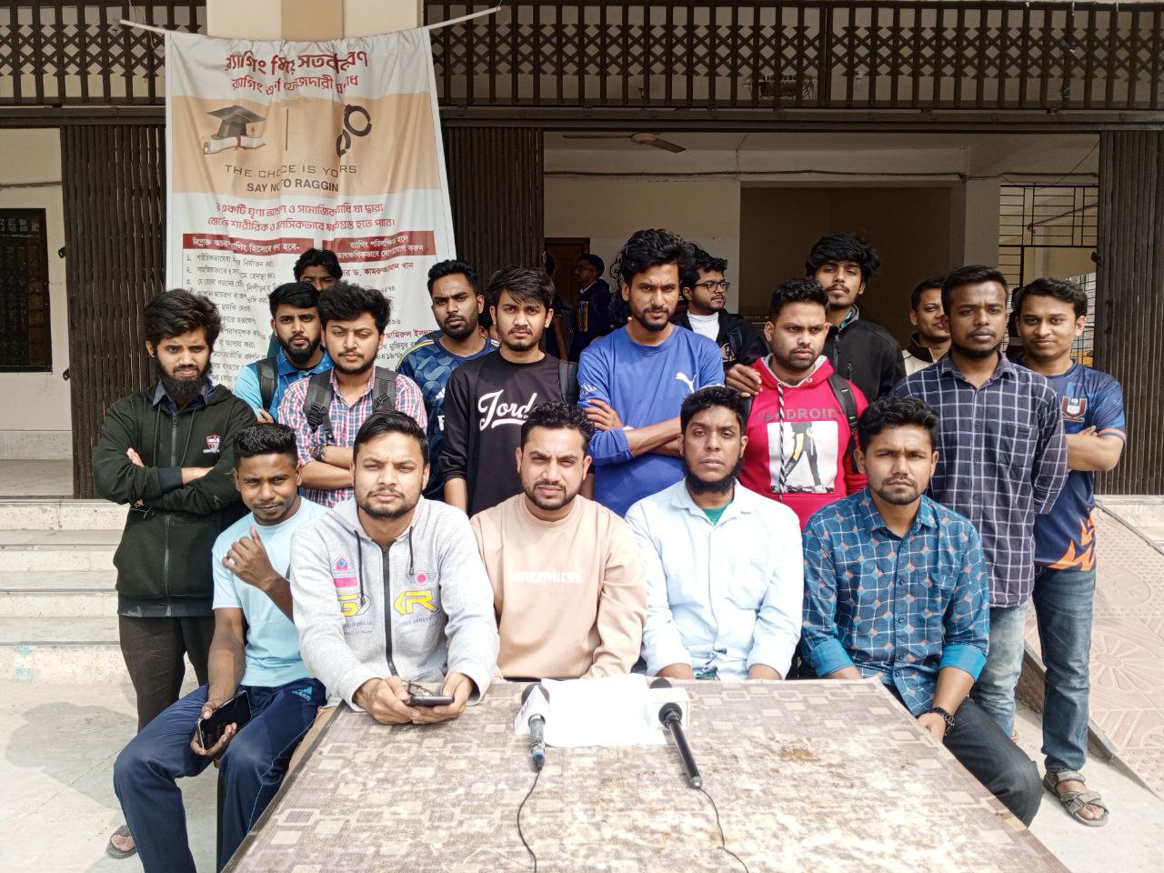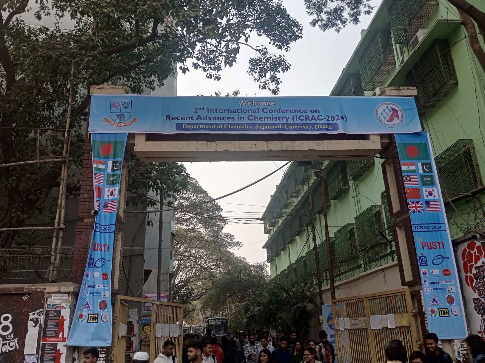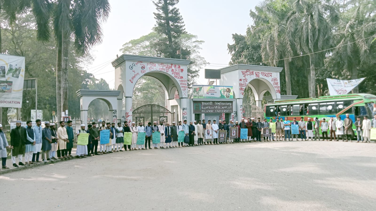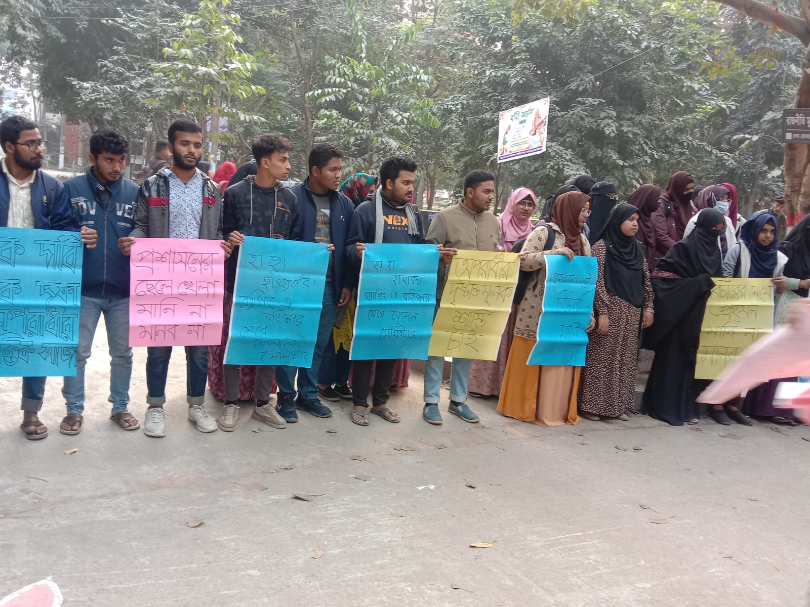 জবির প্রধান ফটকে ব্যানারের নিচে ঢাকা পড়লো বিশ্ববিদ্যালয়ের নাম