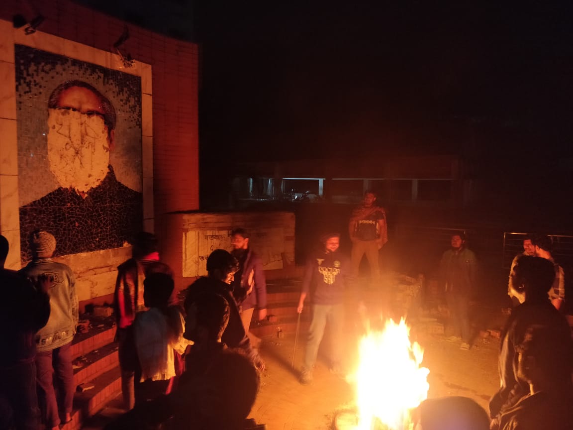 সিকৃবিতে বিক্ষোভ শেষে শেখ মুজিবের ম্যুরাল ভাঙচুর