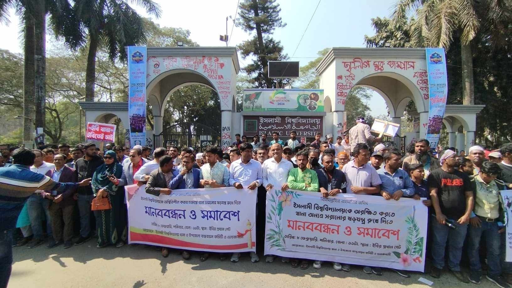 থানা স্থানান্তর না করতে ইবিতে বিক্ষোভ ও মানববন্ধন
