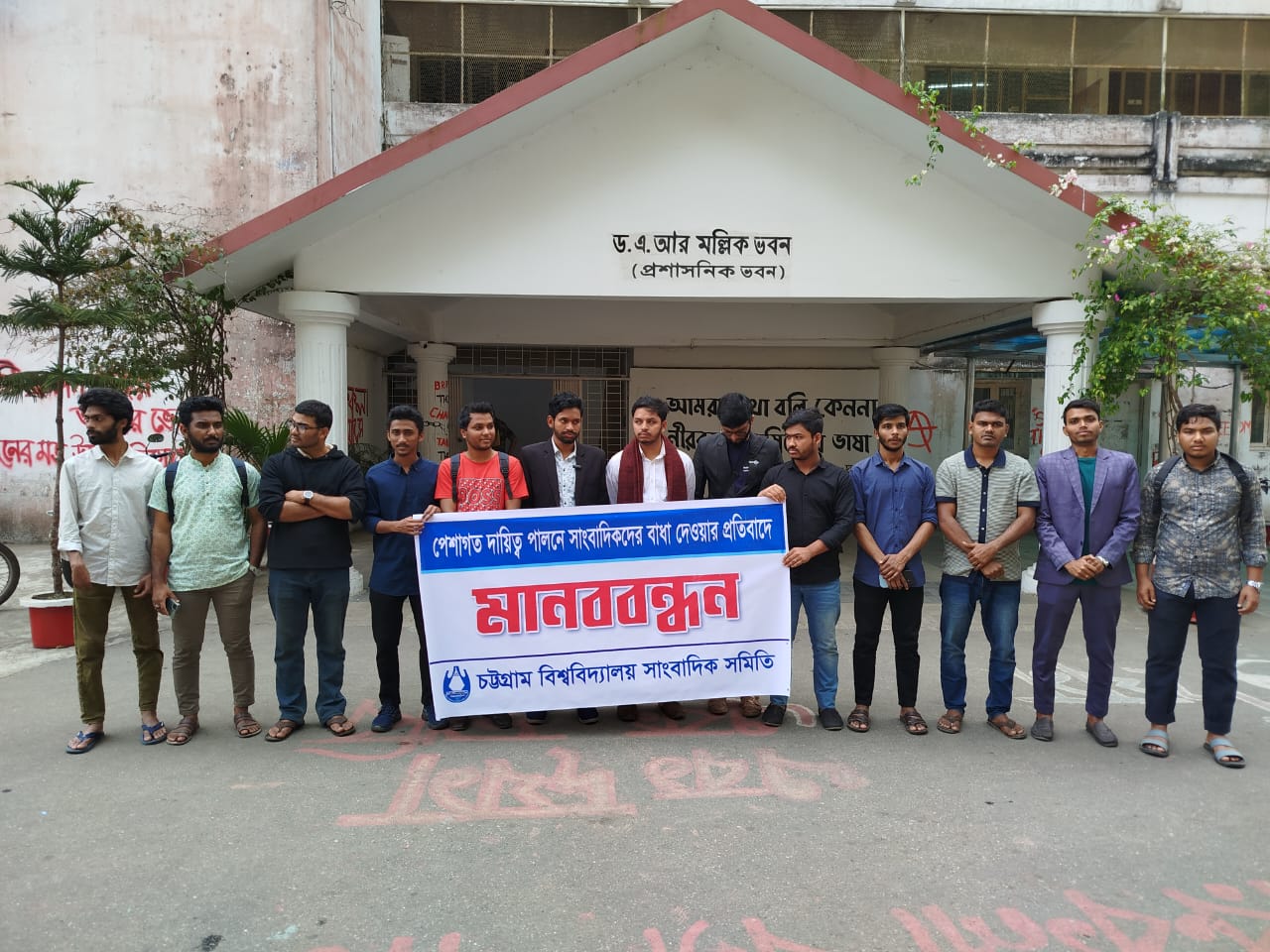 চবিতে সাংবাদিক হেনস্তার ঘটনায় চবিসাসের মানববন্ধন