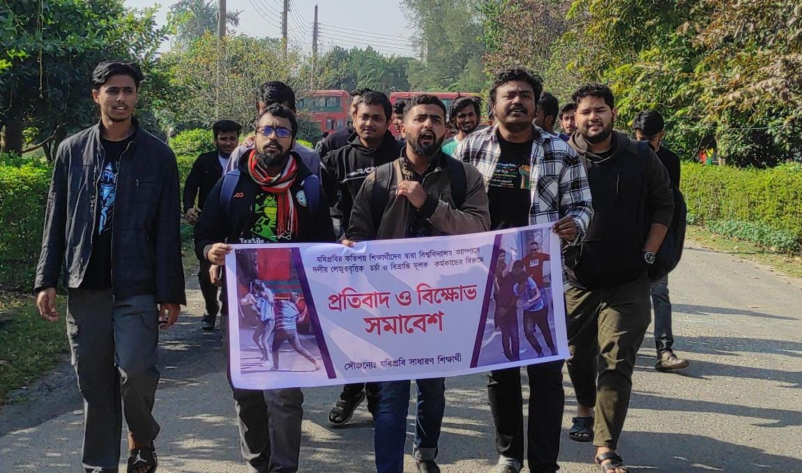 লেজুড়বৃত্তিক ছাত্ররাজনীতি চর্চার বিরুদ্ধে যবিপ্রবি শিক্ষার্থীদের বিক্ষোভ