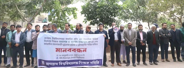জবি প্রক্টরের ওপর হামলার প্রতিবাদে মানববন্ধন