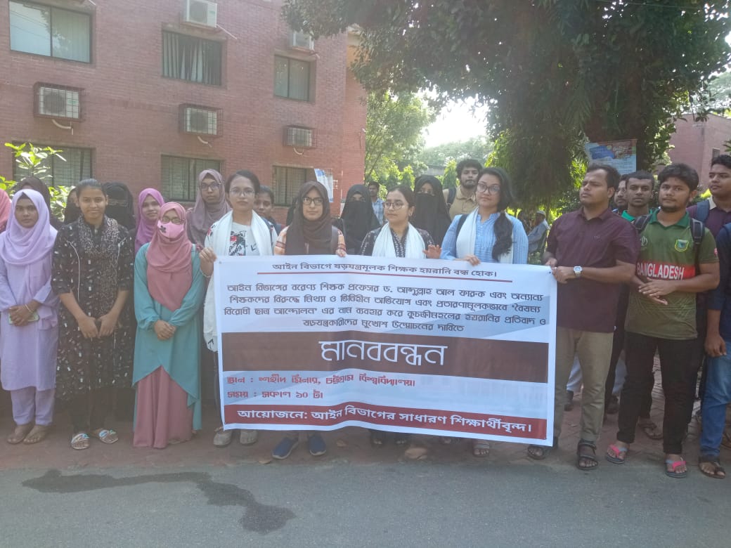 চবি আইন অনুষদের ডিনের বিরুদ্ধে মিথ্যা অভিযোগের প্রতিবাদে মানববন্ধন
