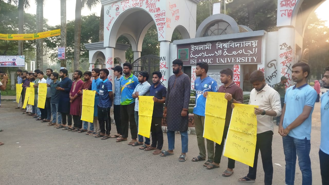 শিক্ষার্থীর উপর হামলার প্রতিবাদ ও বিচারের দাবিতে ইবিতে মানববন্ধন