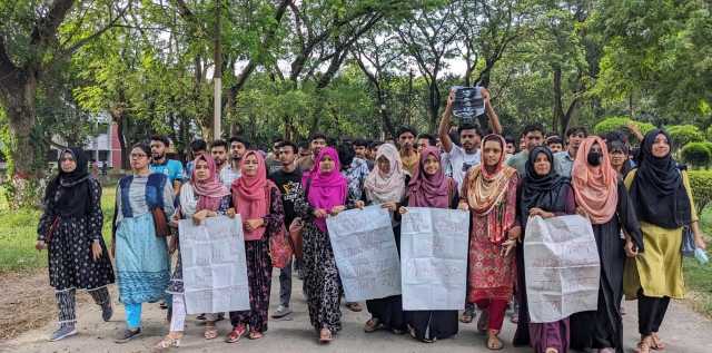 অবাঞ্চিতের ব্যানারে নিজ বিভাগের শিক্ষকের নামের প্রতিবাদে শিক্ষার্থীদের বিক্ষোভ