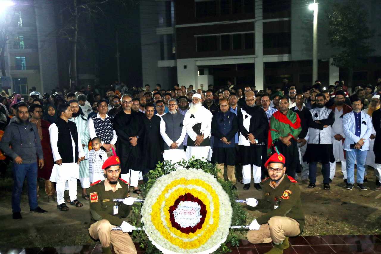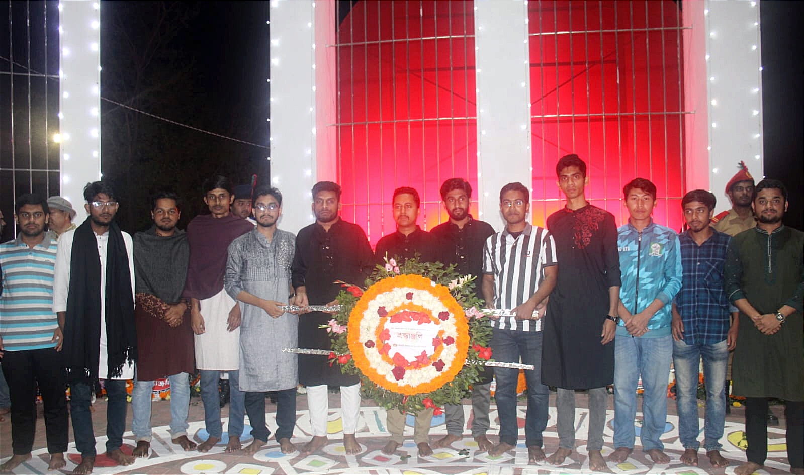 একুশের প্রথম প্রহরে শহিদ মিনারে ফুল দিয়ে ভাষা শহিদদের শ্রদ্ধা জানালো কুবি