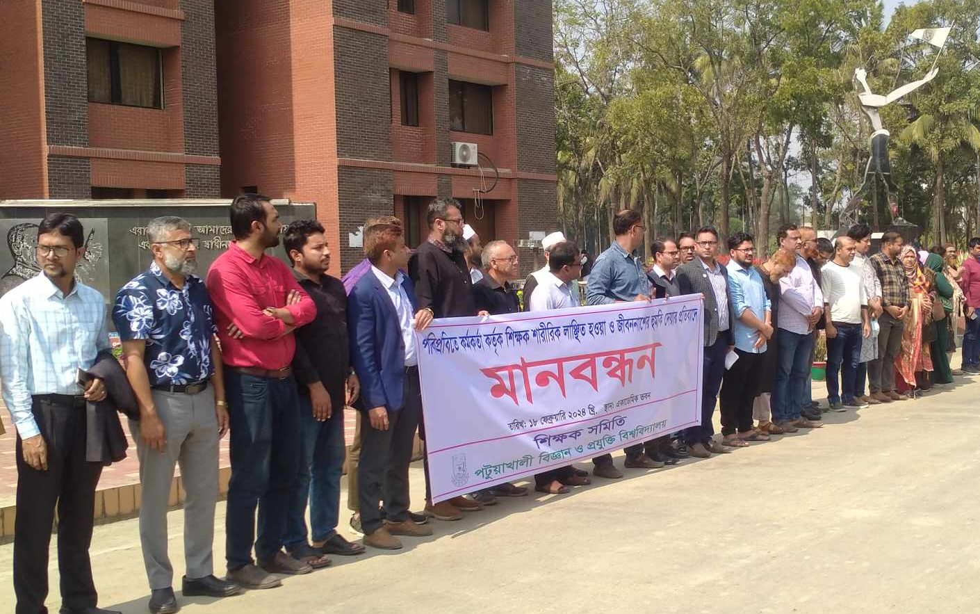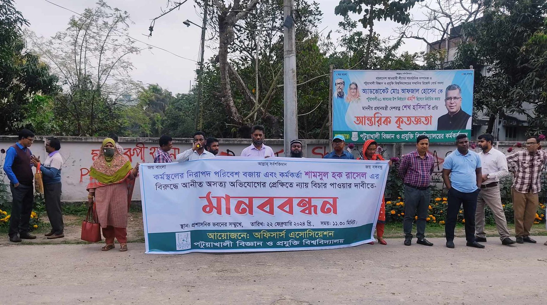 পবিপ্রবিতে শিক্ষক লাঞ্ছিত, অভিযুক্ত কর্মকর্তার চাকুরিচ্যুতের দাবিতে মানববন্ধন