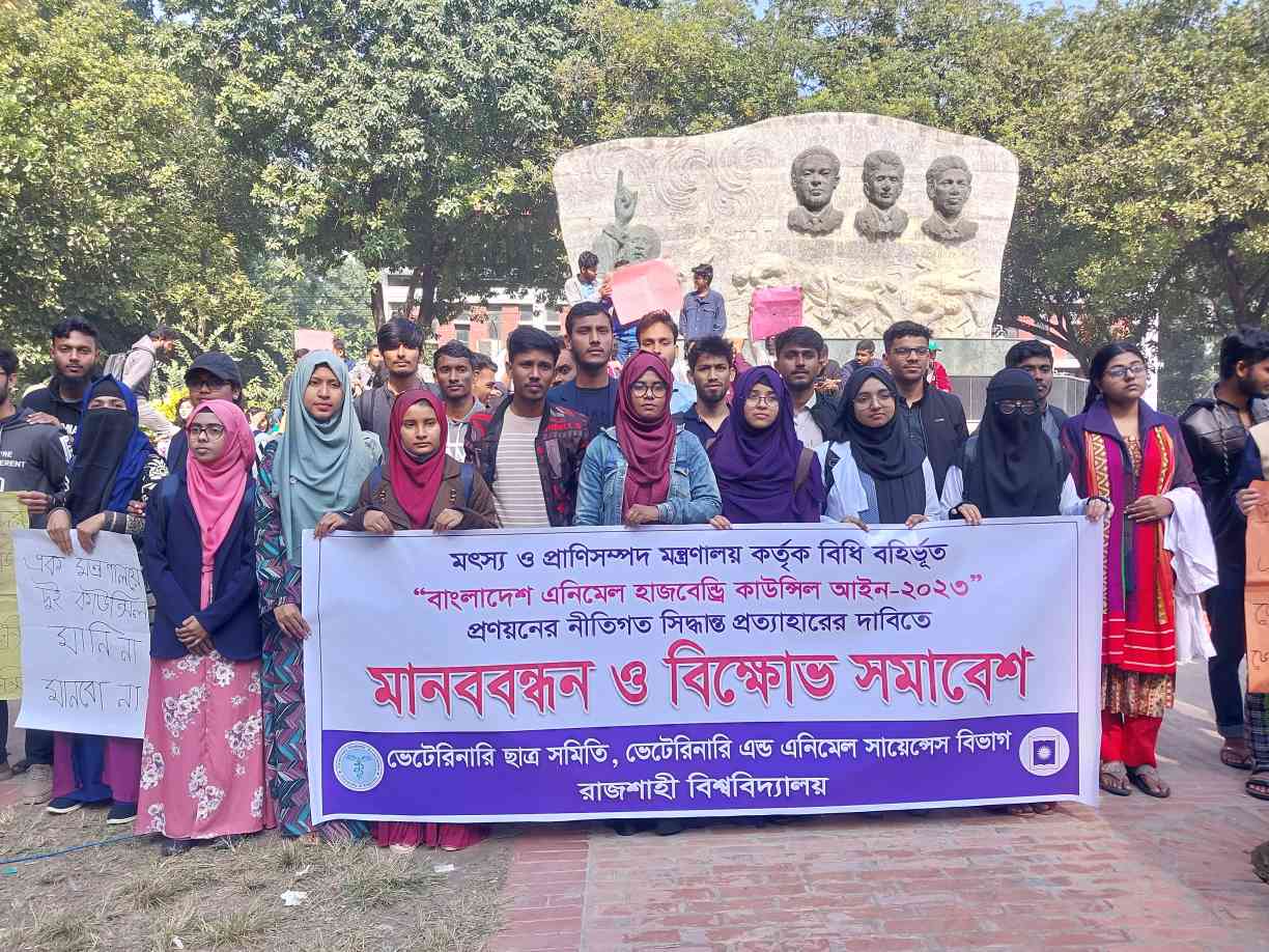 রাবিতে এনিমেল হাজবেন্ড্রি কাউন্সিল আইন বাতিলের দাবিতে শিক্ষার্থীদের মানববন্ধন