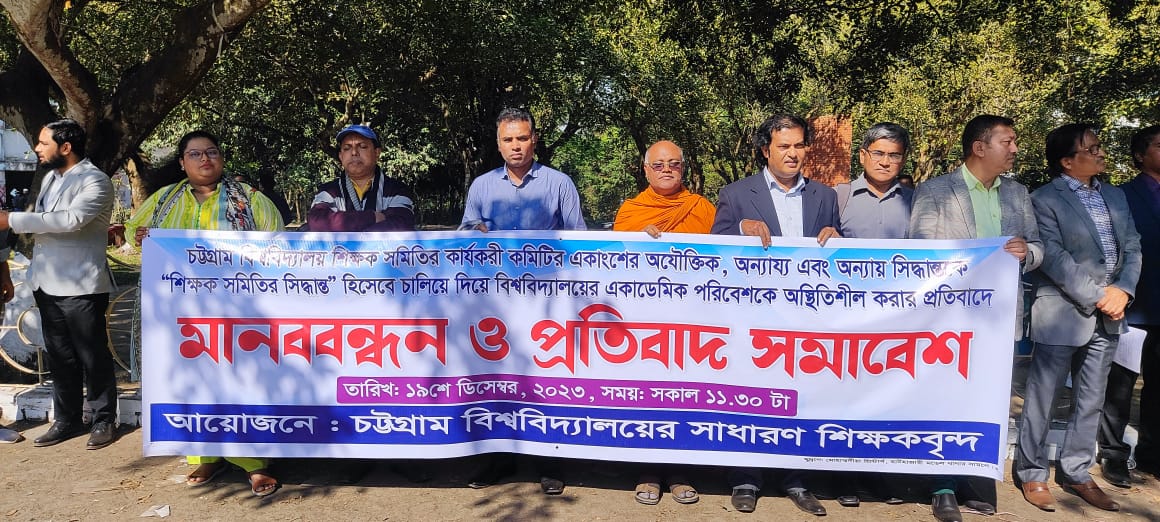 চবি উপাচার্য ও উপ-উপাচার্যের পদত্যাগের দাবিতে শিক্ষক সমিতির অবস্থান