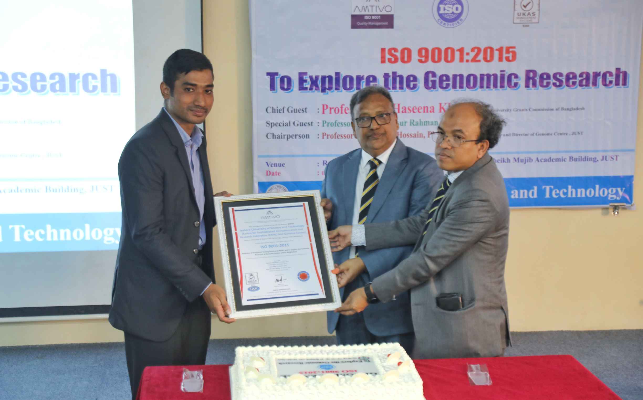 যবিপ্রবির জিনোম সেন্টারকে আইএসও সনদ হস্তান্তর