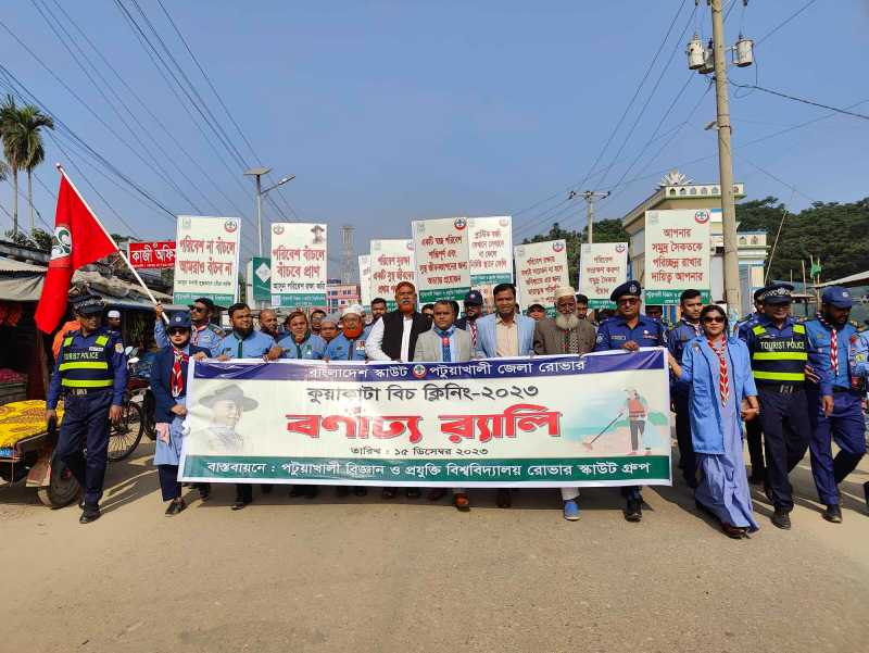 কুয়াকাটায় পবিপ্রবি রোভারের পরিচ্ছন্নতা অভিযান