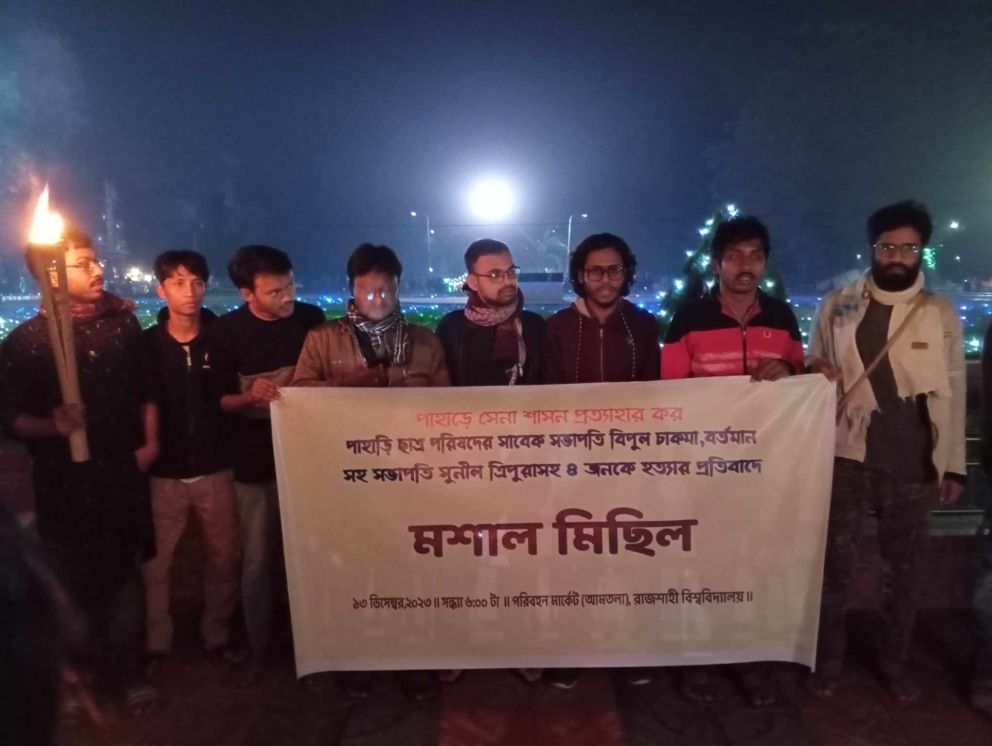 পাহাড়ে সেনা শাসন প্রত্যাহারের দাবিতে রাবিতে মশাল মিছিল