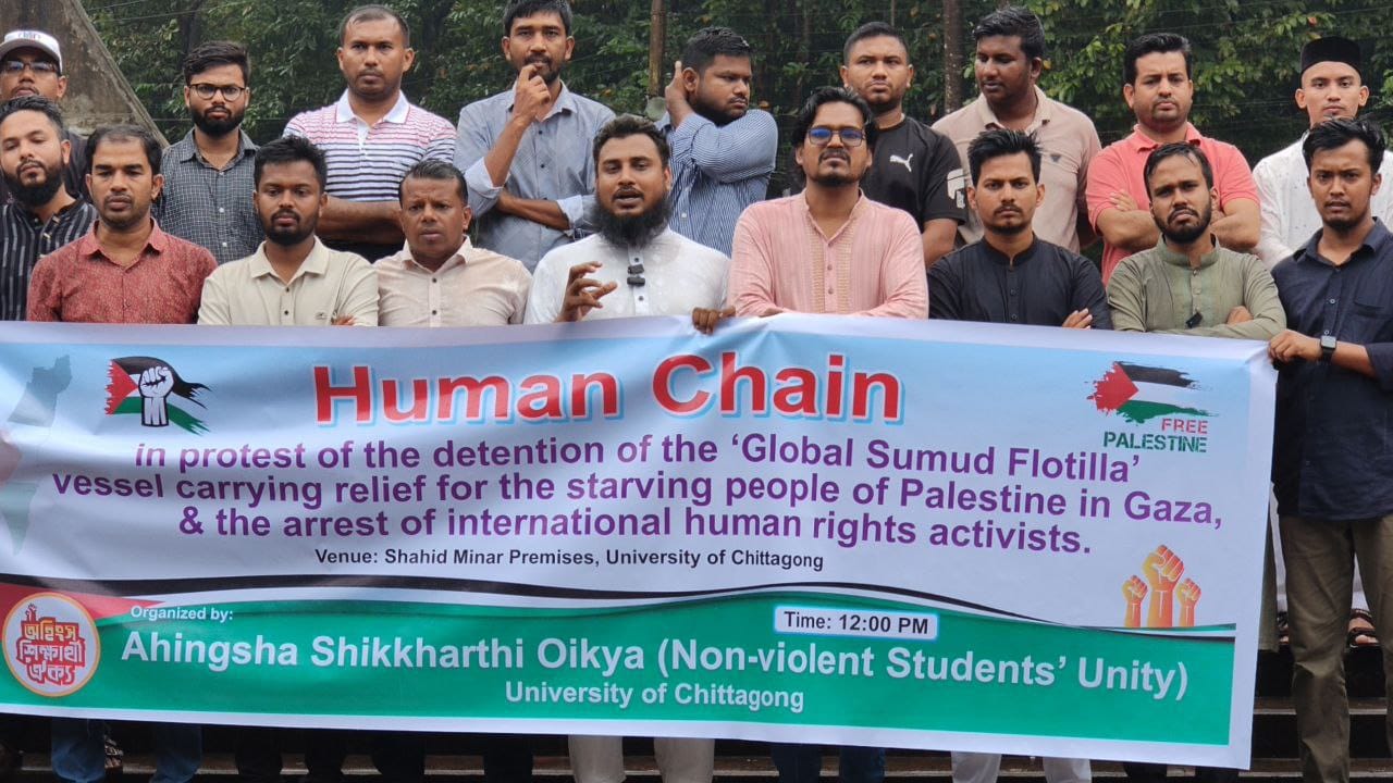 ত্রাণবাহী নৌযানের ওপর ইসরায়েলি হামলার প্রতিবাদে চবিতে মানববন্ধন
