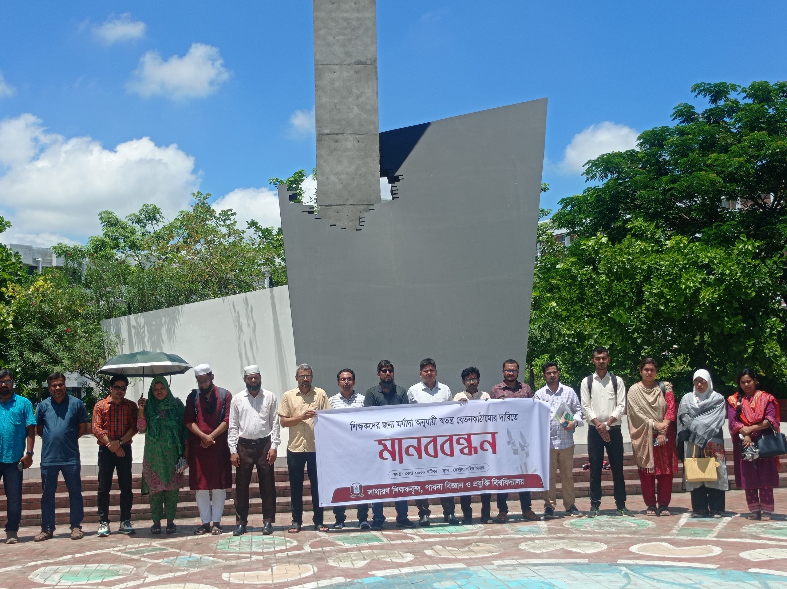 স্বতন্ত্র বেতন কাঠামোর দাবিপ্রবিতে পাবিপ্রবিতে শিক্ষকদের মানববন্ধন