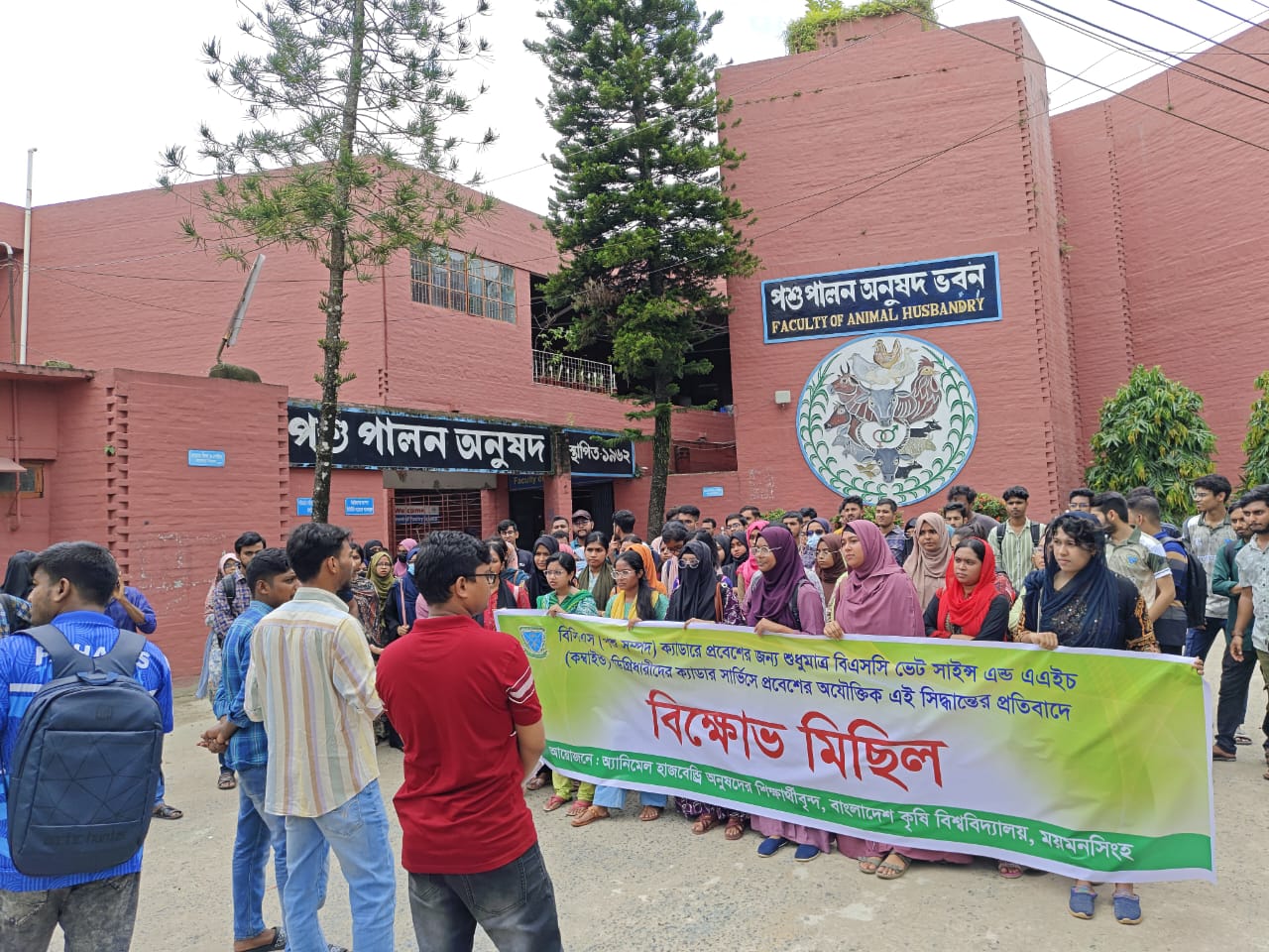 বাকৃবিতে পশুপালন অনুষদের শিক্ষার্থীদের বিক্ষোভ ও সংবাদ সম্মেলন
