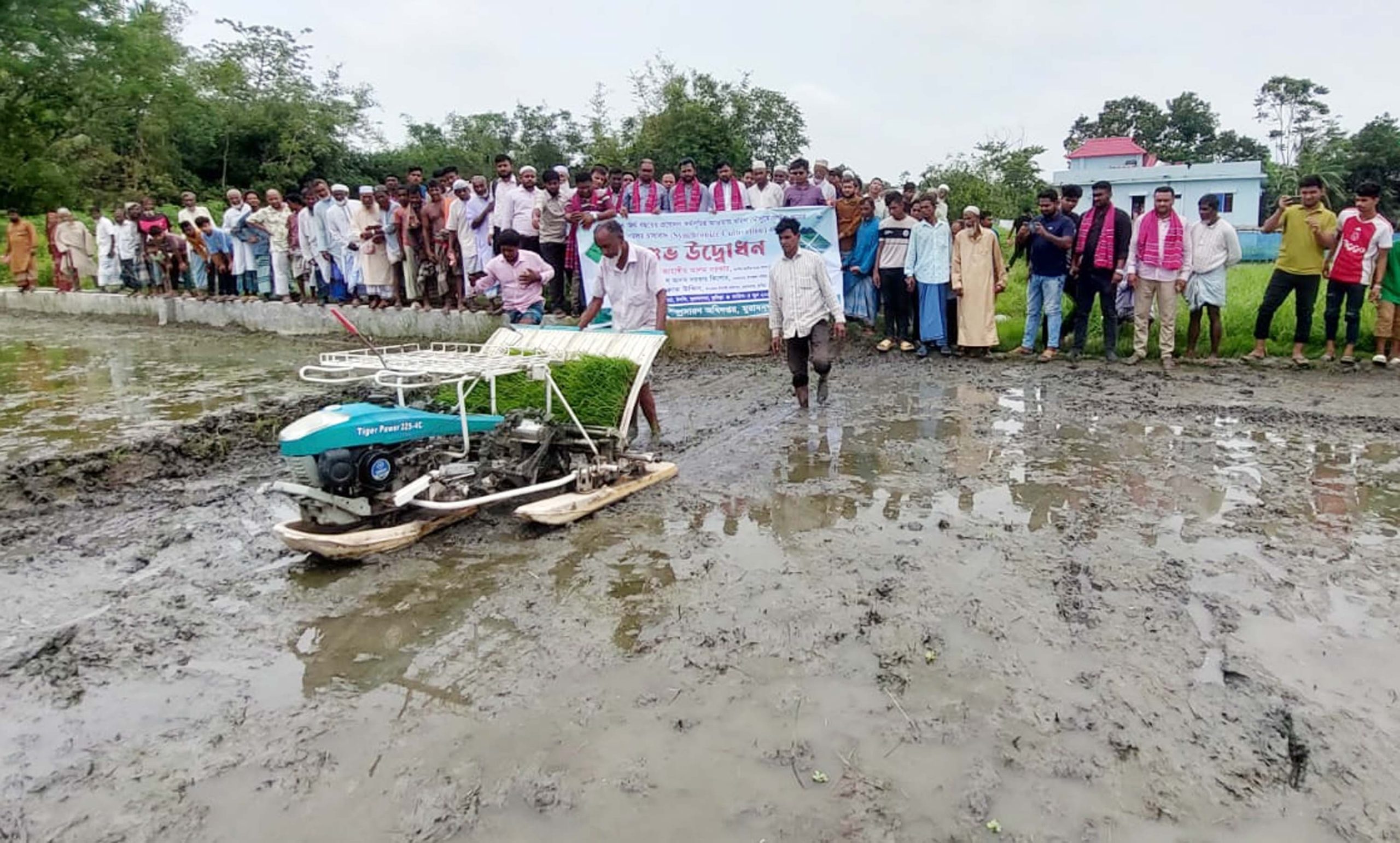 কুমিল্লাার মুরাদনগরে সমলয় পদ্ধতিতে ধানের চারা রোপন