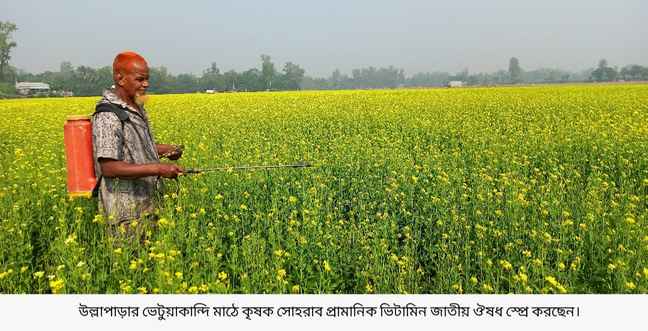 উল্লাপাড়ায় সরিষা ফসলে ভিটামিন ঔষধ স্প্রে