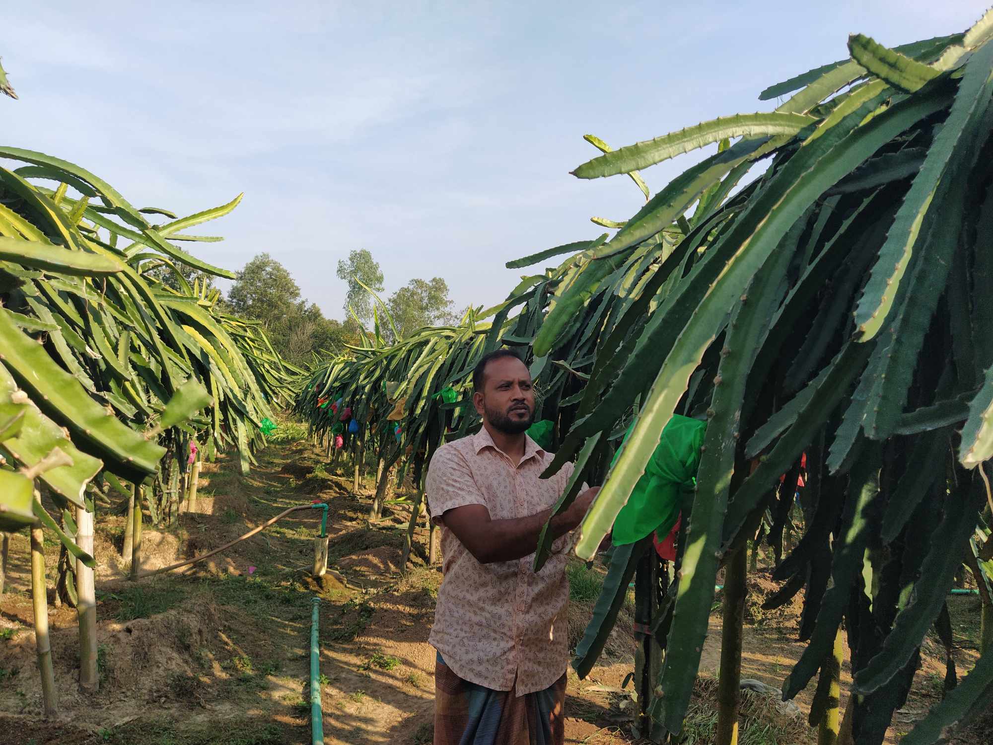 ভালুকায় বাণিজ্যিক ভিত্তিতে ড্রাগন ফল চাষে সফল লাভলু মিয়া