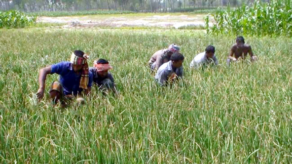 কৃষি প্রণোদনায় রাজশাহীতে পেঁয়াজ চাষে বিপ্লব! চারা রোপনে ব্যাস্ত কৃষক