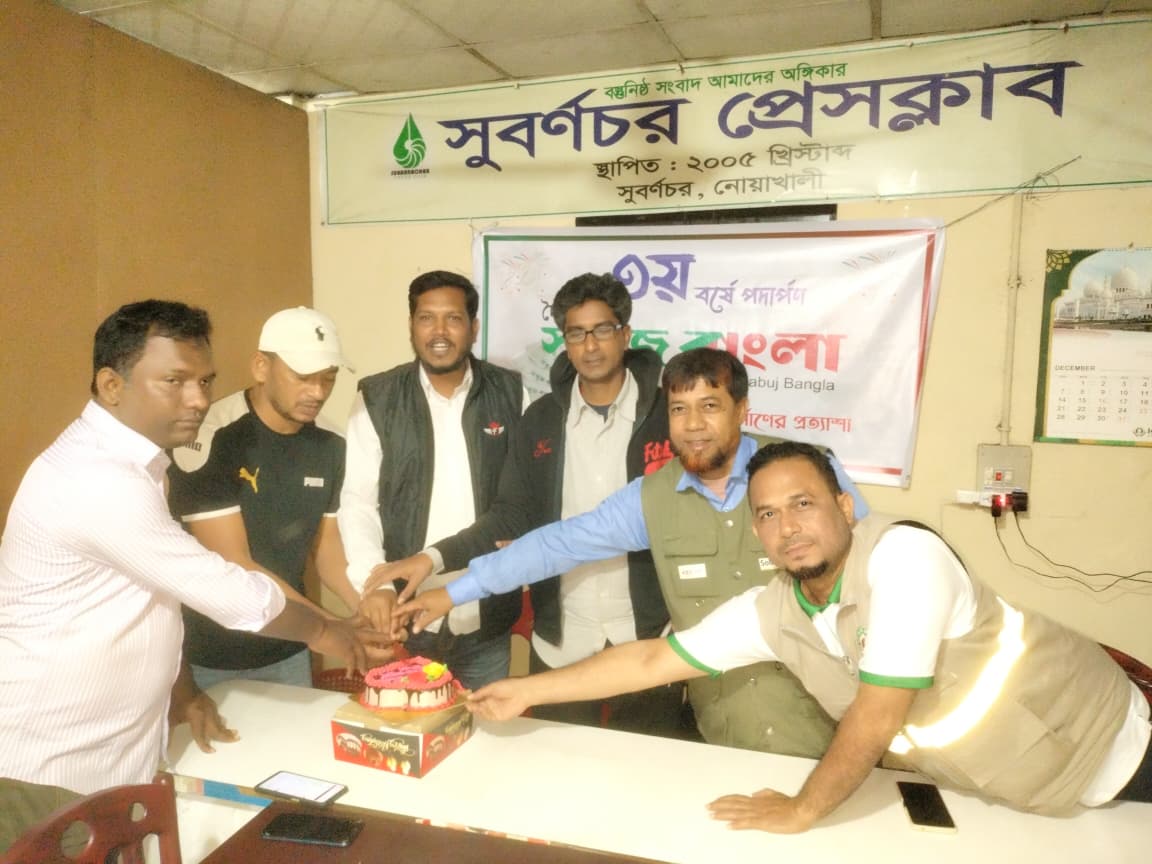 নোয়াখালী সুবর্ণচরে উৎসবমুখর পরিবেশে দৈনিক সবুজ বাংলা-এর ৩য় প্রতিষ্ঠা বার্ষিকী উদযাপন