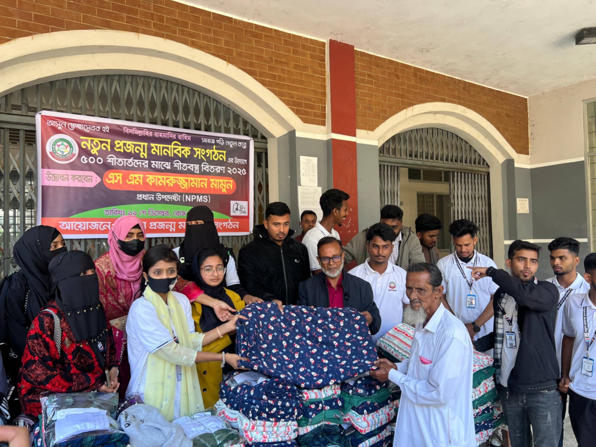 সদরপুরে নতুন প্রজন্ম মানবিক সংগঠনের উদ্যোগে ৫০০ শীতার্তের মাঝে শীতবস্ত্র বিতরণ।