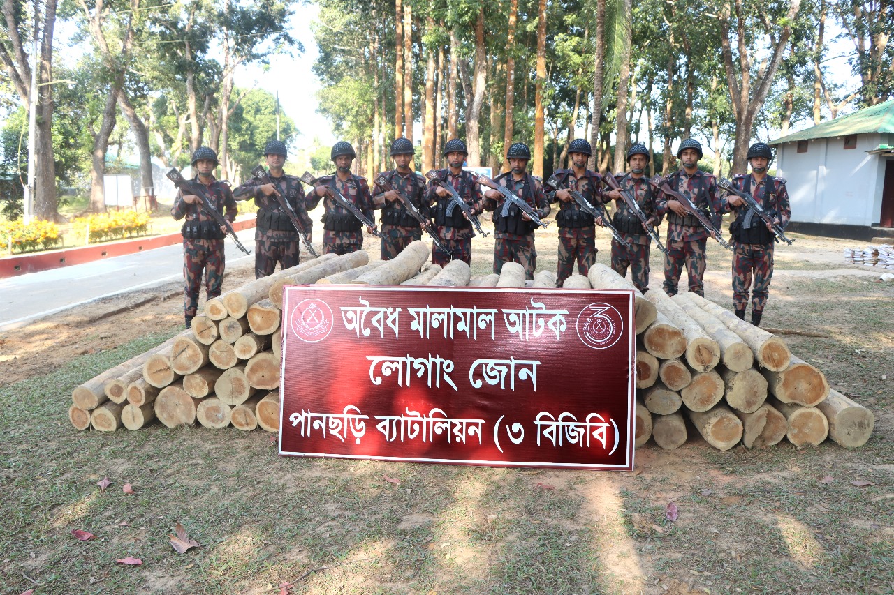 পানছড়িতে ৩ বিজিবির অভিযানে লাখ টাকার সেগুন কাঠ আটক