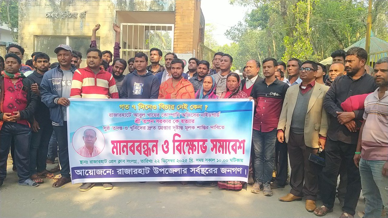 আবুল খায়ের টোব্যাকো নৈশপ্রহরী তপন হত্যায় রাজারহাটে বিক্ষোভ