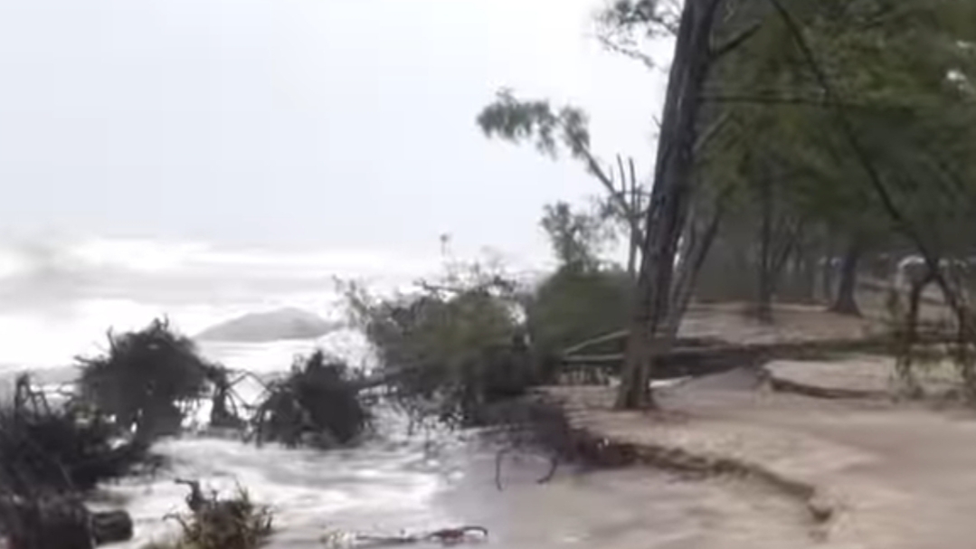 ব্যাপক ভাঙ্গনে উপড়ে গেছে ঝাউগাছ
