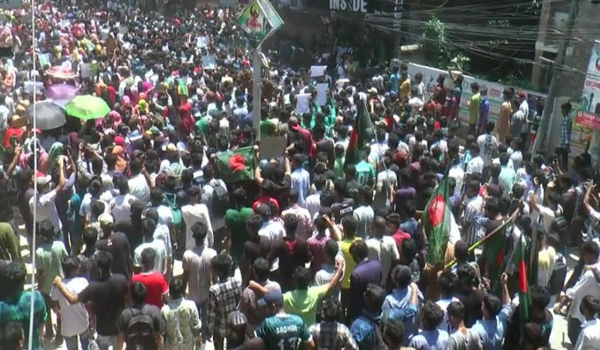 ৬ শিক্ষার্থীকে হত্যা, হামলার প্রতিবাদে ও কোটা পুনর্বহালের দাবিতে বিক্ষোভ মিছিল